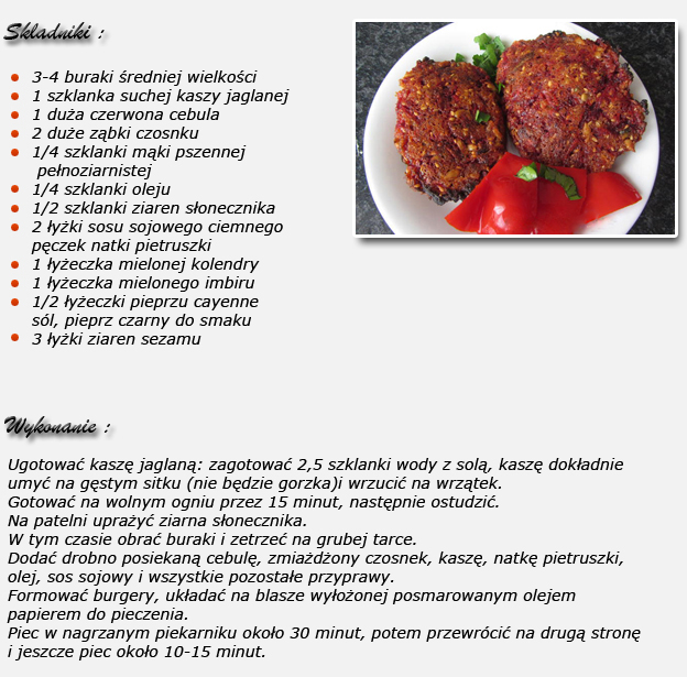 Polecane - Burgery z buraków i kaszy :